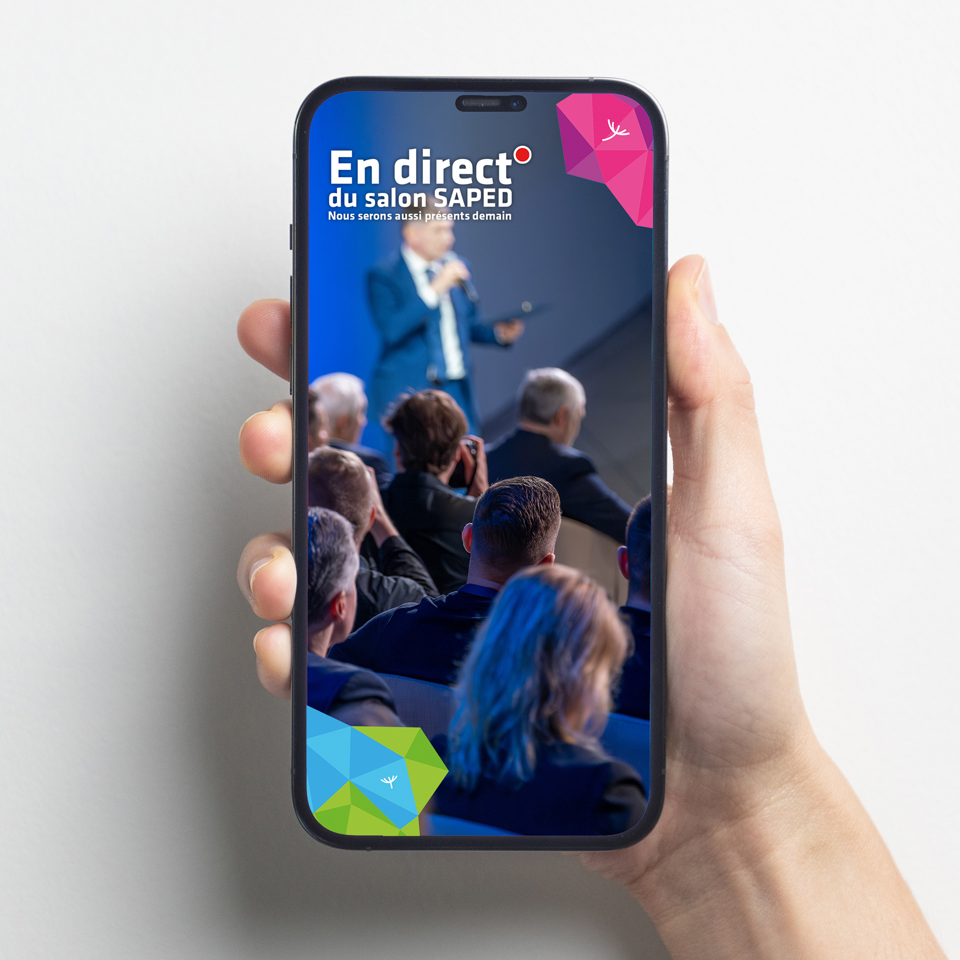 À l’occasion de sa participation au salon SAPED, le client souhaitait un visuel fort, marquant et facilement identifiable.