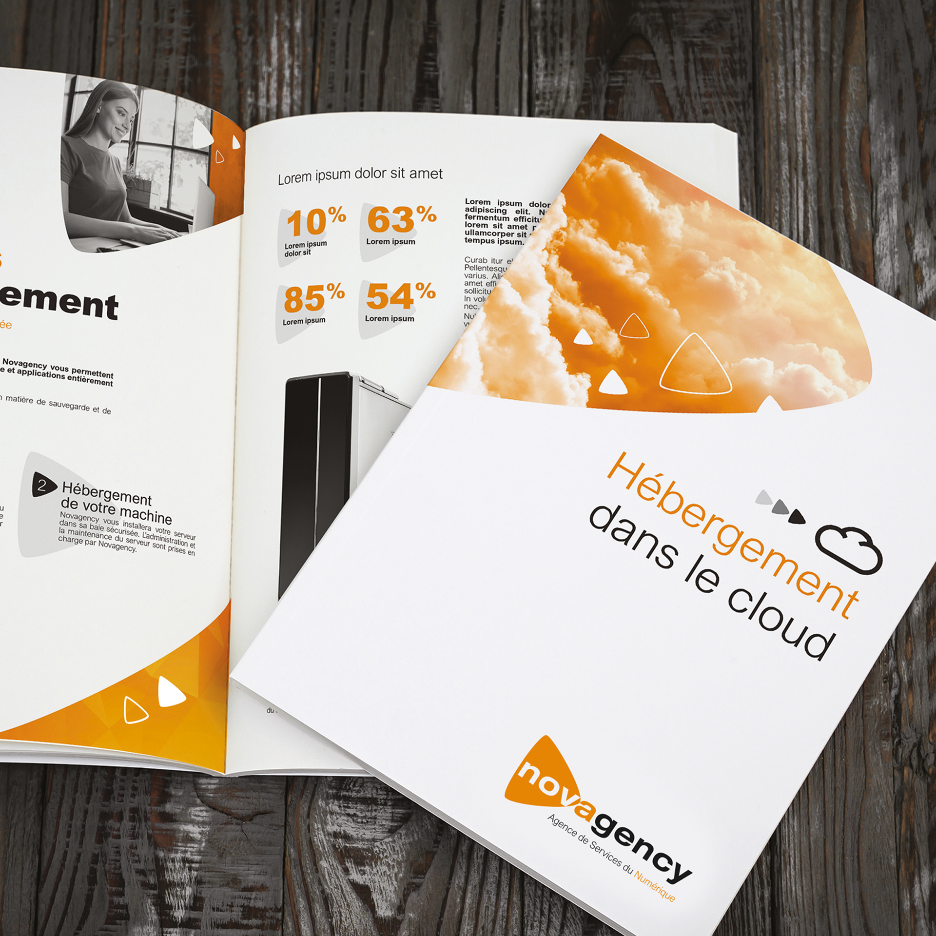 Novagency propose des services numériques à destination des professionnels, de l’hébergement cloud à la téléphonie IP, en passant par l’infogérance. L’agence avait besoin d’un univers graphique affirmé, à partir de son logo existant.