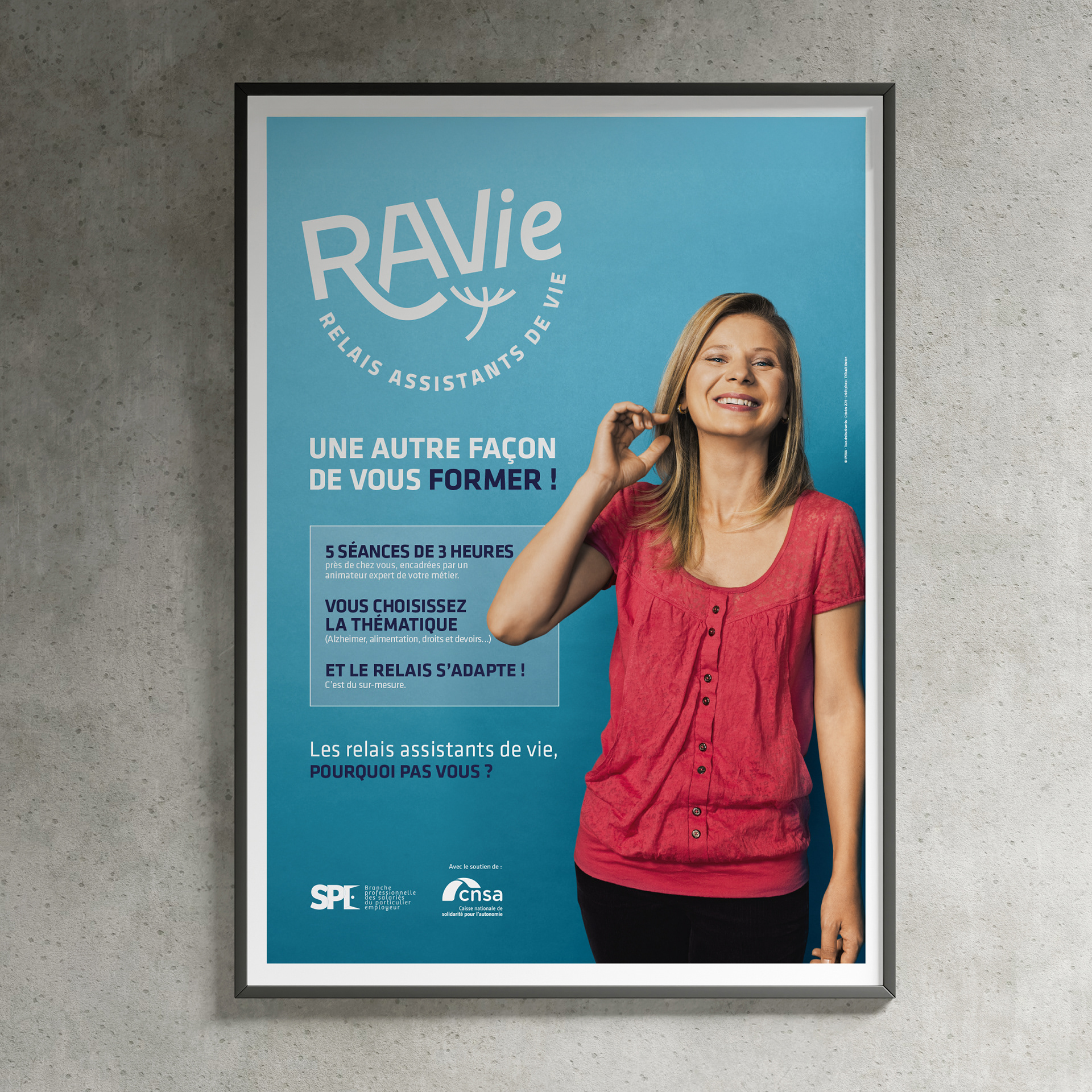 Affiches, flyers, kakémonos, infographies… chaque support a été conçu dans le respect de la charte graphique RAVie, en veillant à rendre l’information claire, chaleureuse et lisible par tous les publics visés.