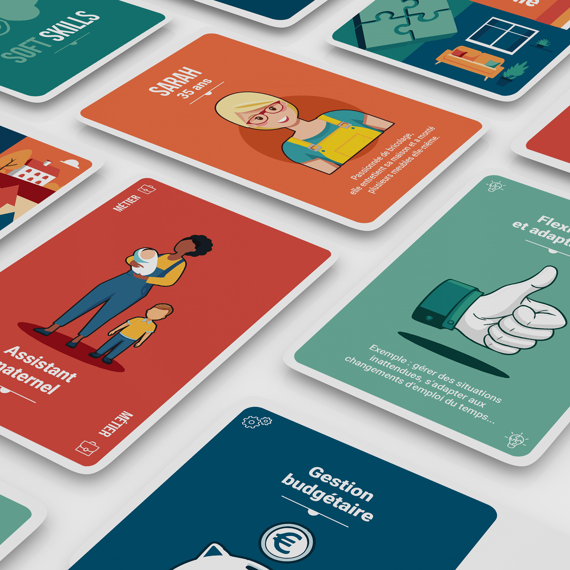 L’accompagnement graphique a couvert l’ensemble du dispositif : conception du logo, développement de l’identité visuelle, réalisation des illustrations pour les cartes, packaging de la boîte, ainsi que l’UX/UI de la landing page dédiée. Le tout pensé pour mêler clarté, impact visuel et accessibilité pédagogique.