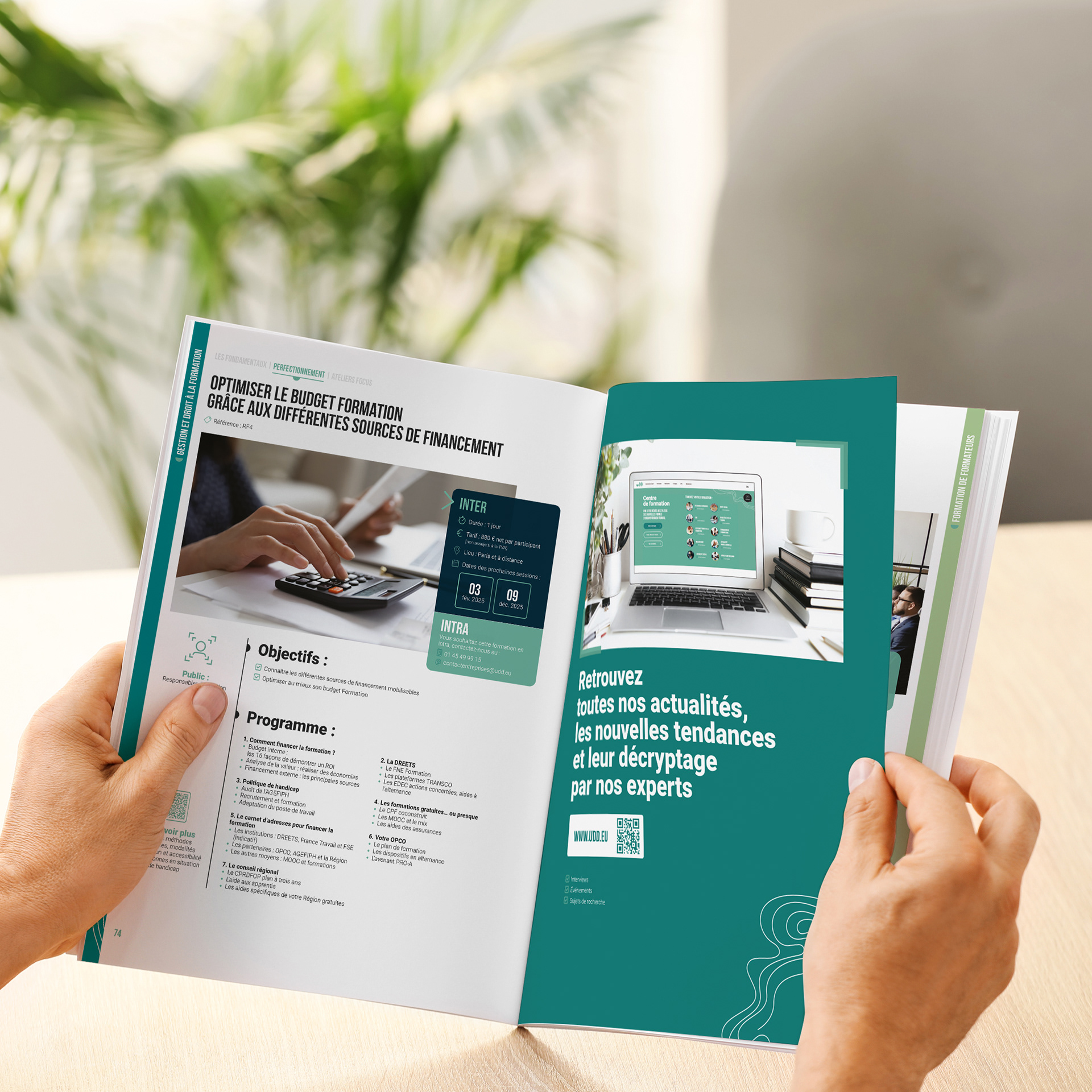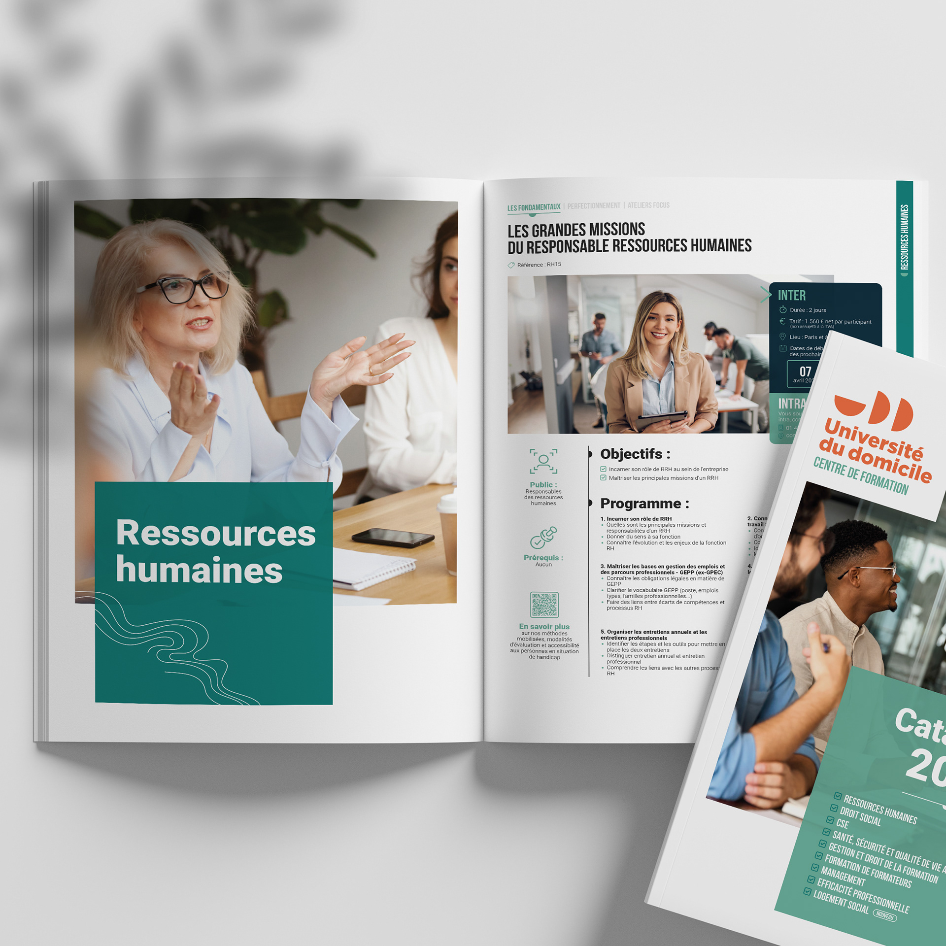 Un catalogue pensé comme un outil de lecture fluide, où chaque formation trouve sa place dans une architecture graphique claire et cohérente.