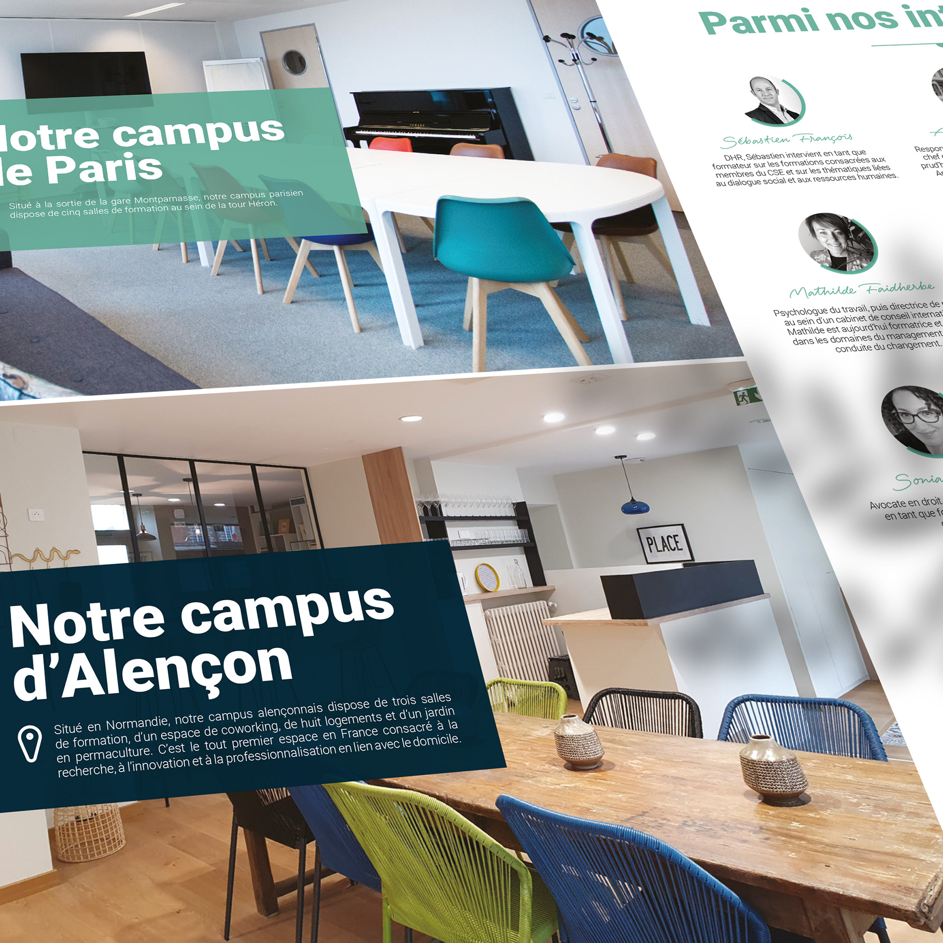 La mission consistait à concevoir la mise en page complète d’un document dense, en pensant la hiérarchie visuelle, la segmentation de l’offre et un gabarit modulable pour les fiches formation. L’ensemble conjugue clarté, rigueur et confort de lecture.