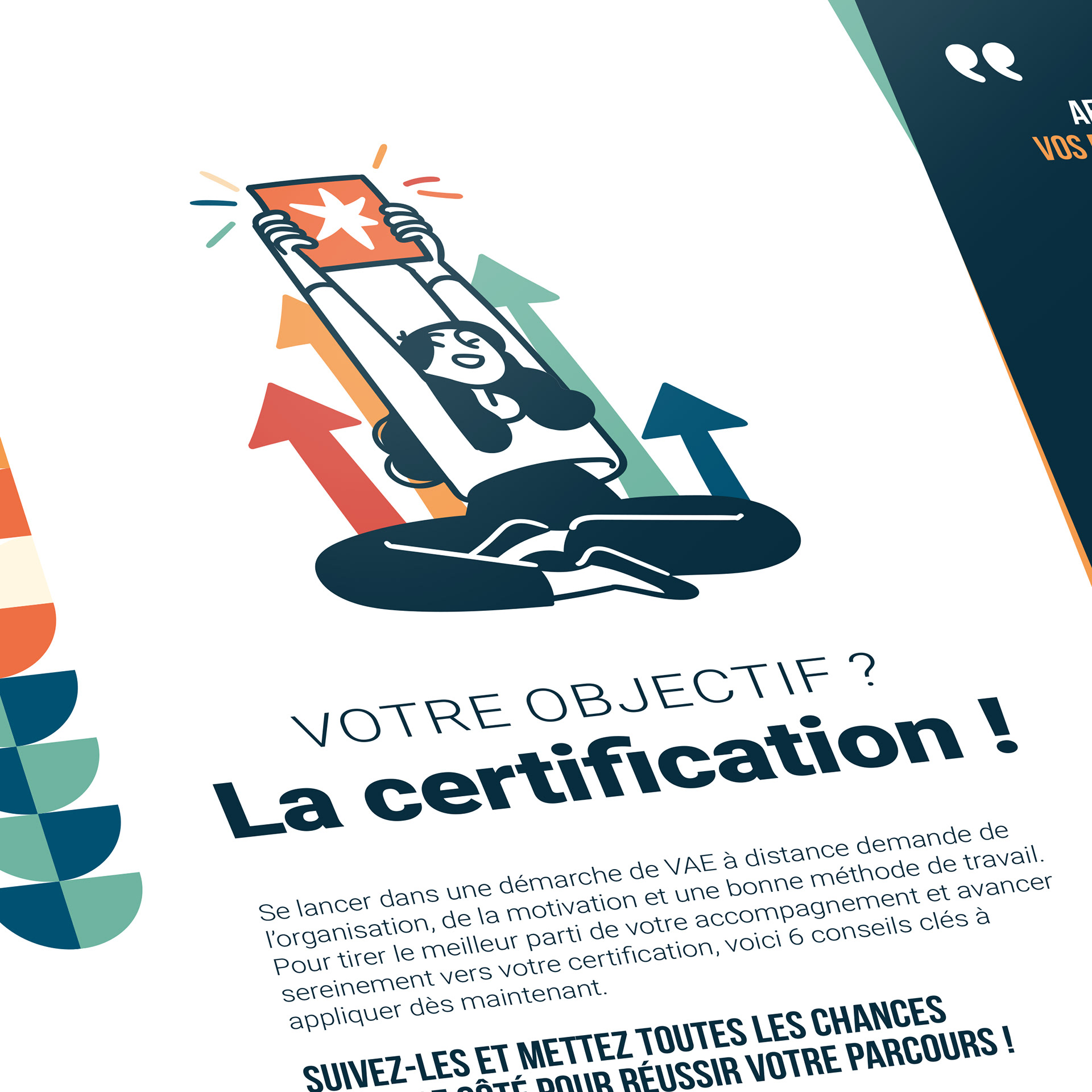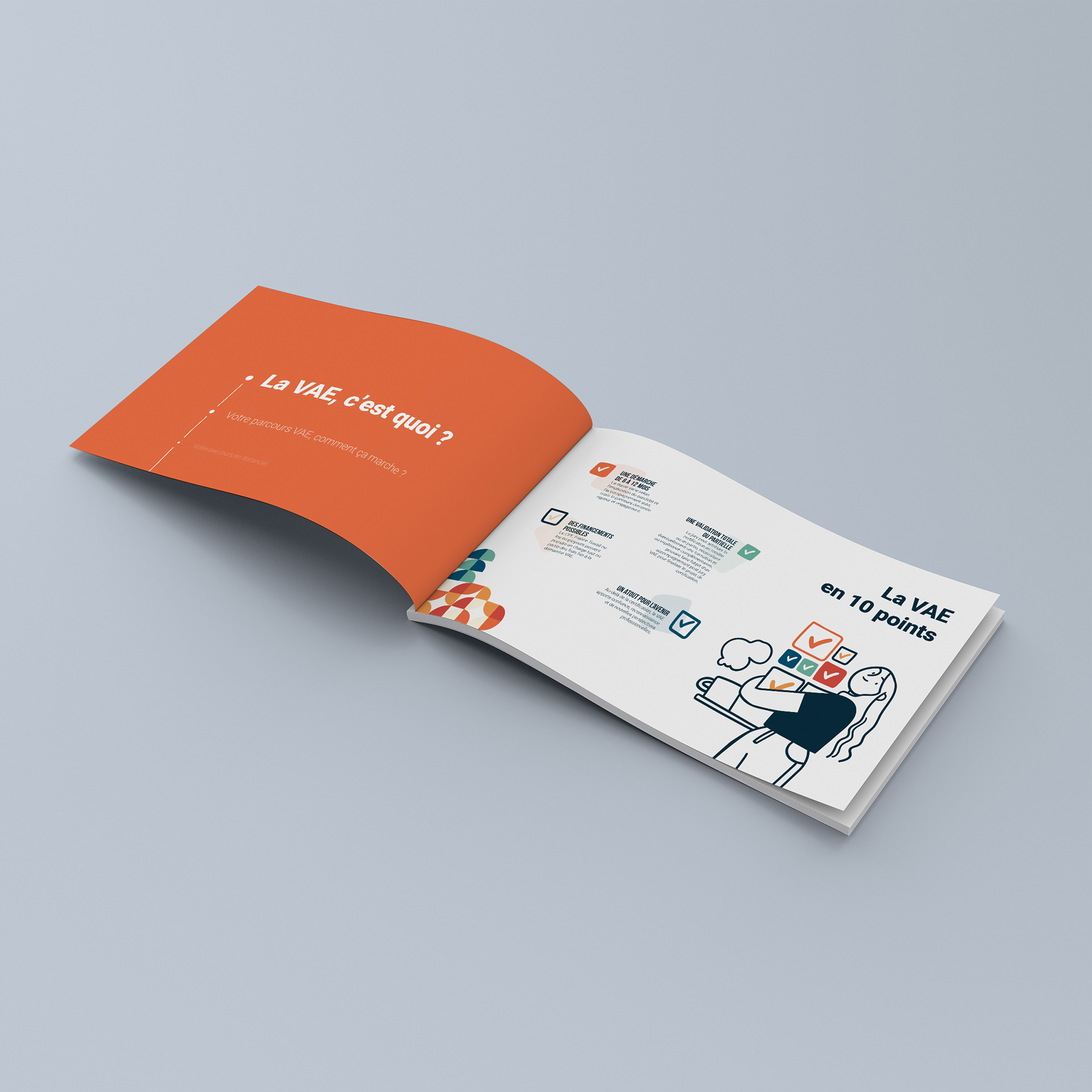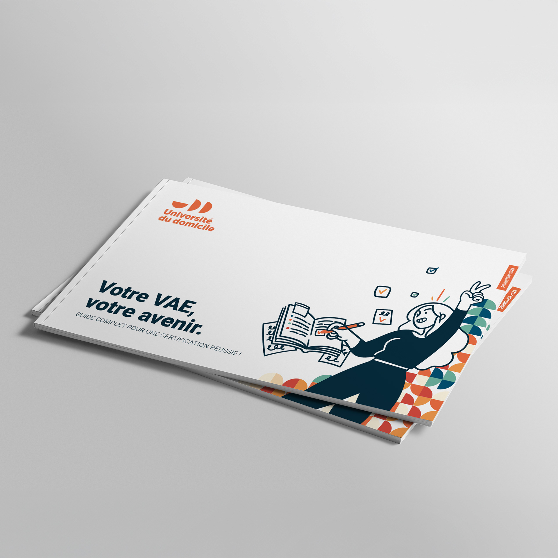 L'Université du domicile avait besoin d’un guide d'accueil clair et engageant, à destination des candidats à la VAE, tout en respectant sa charte graphique existante.